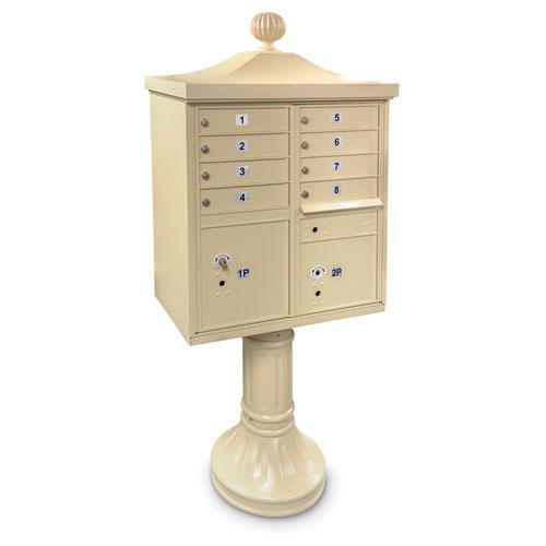 13. 8 Door F-Spec Cluster Box Unit with Pedestal (Sandstone)