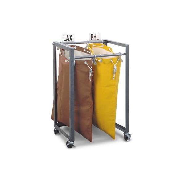 Offset mail bag racks are the most efficient option for sorting bags of mail. The rear of bag rack is positioned slightly higher than the front for sorting ease and accuracy. While manually processing bundles, handlers have a better view of the bag opening and target to pitch mail. Slide full mail bags out from under rack- missing front bar from three sided design allows for easy removal.