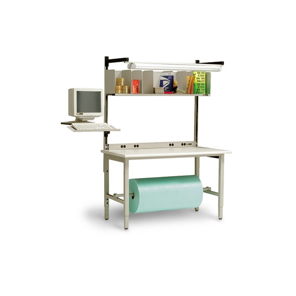 Standard packaging stations offer a large work surface with shelf storage, a bottom paper roll and an overall adjustable height.