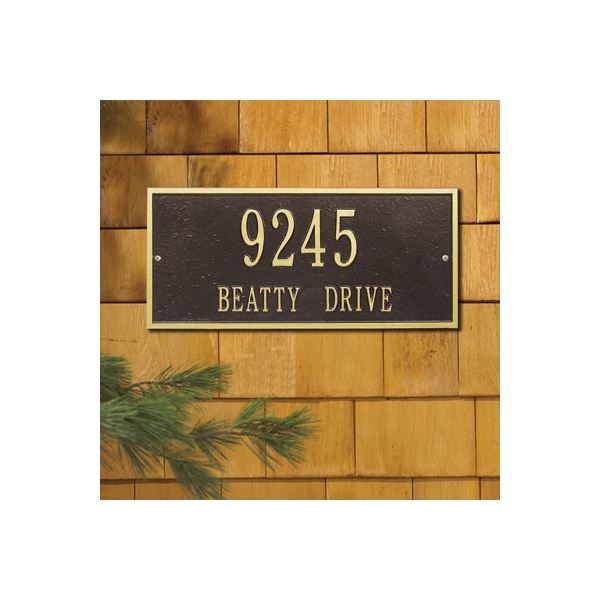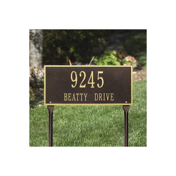Street signage is constructed from durable aluminum with vinyl screen printed on the face. Address signs are also available in a variety of finishes and designs.